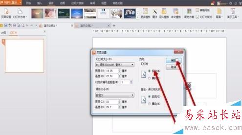 1、打開PPT軟件,點擊新建幻燈片,新建幻燈片文檔后,在菜單欄的”設計“欄中選擇”頁面設置“。在彈出的對話框中,將”幻燈片大小“設置為”A4“尺寸,然后將”幻燈片方向”設置為“縱向”。點擊確定