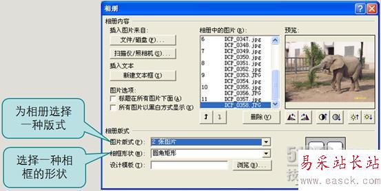 回到“相冊”對話框中,現在我們需要將相冊的版式設計成自己喜歡的樣式。