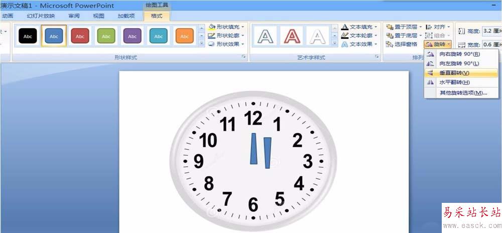 5、把復(fù)制好的時針進行格式—旋轉(zhuǎn)—垂直旋轉(zhuǎn)。