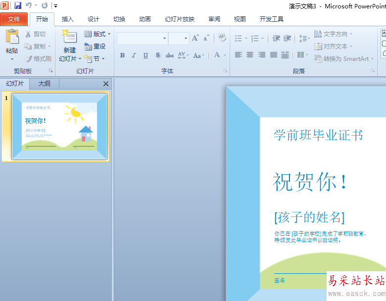 ppt2010中想要設計一款學前班畢業證書,我們可以直接使用模板來制作,下面我們就來看看詳細的教程。