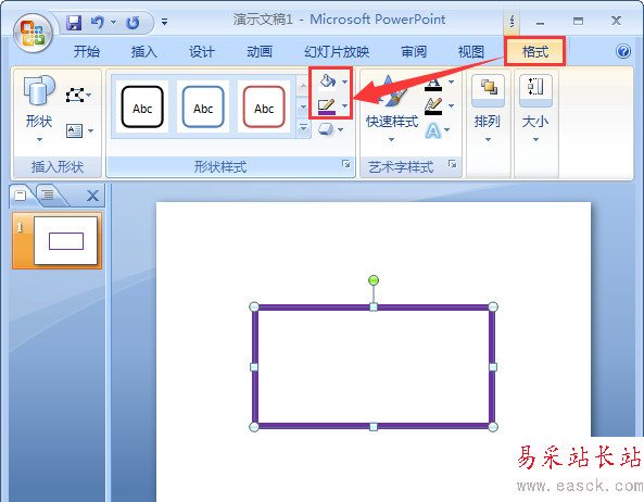 3、選中剛剛繪畫好的矩形,給它填充為白色,邊框填充為紫色,線條根據需要的大小進行設置即可。