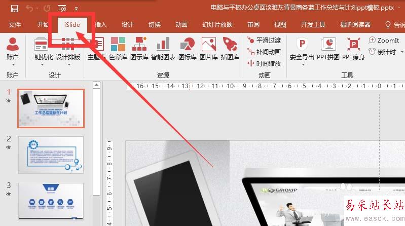 2、下載名叫【iSlide】的PPT插件,直接百度搜索islide第一個就是官網,在官網下載安裝后,重啟PPT軟件,在菜單欄會看到多出來一個菜單叫做islide