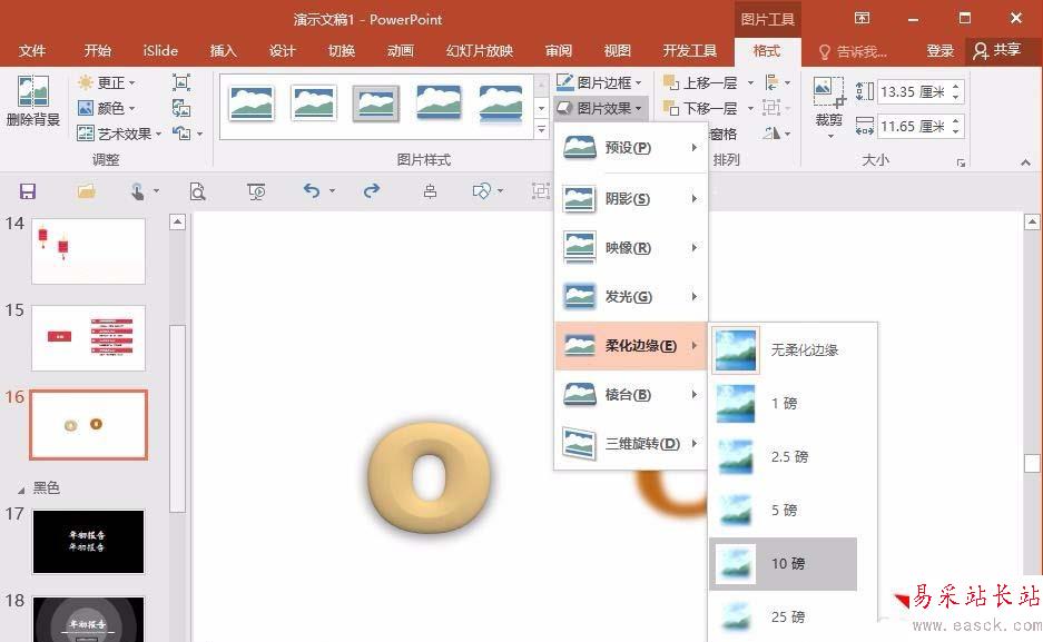 5、然后再設置一個圖片的效果,比如這里的參數為,柔化邊緣,大小為10磅(可以根據自己的效果進行更改,不一定非得一樣)。