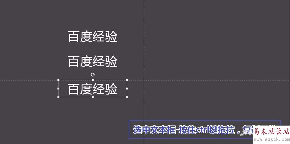1、選中文本框,按住ctrl鍵拖拉-復制兩份。