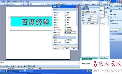 4、單擊“幻燈片設(shè)計(jì)”,單擊“自定義動(dòng)畫”,選擇“進(jìn)入”,選擇”特殊效果“。