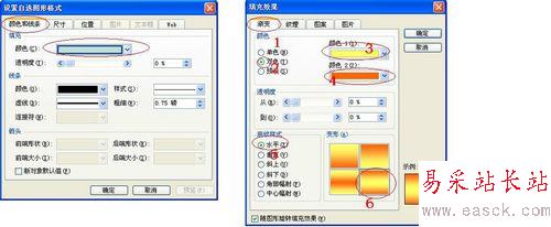2、對長方形進(jìn)行填充顏色。右擊——設(shè)置自選圖形格式——顏色和線條——填充。在填充那里的顏色選擇“填充效果”——漸變——雙色。選擇你喜歡的雙色來填充。制作精美畫卷