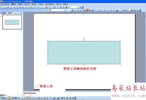 1、先用矩形工具在屏幕上畫一大小適中的長方形。