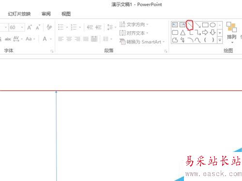3、下一步需要畫刻度,需要使用PPT的線段工具,如下圖所示紅圈部分,選擇畫圖工具欄中的線條。