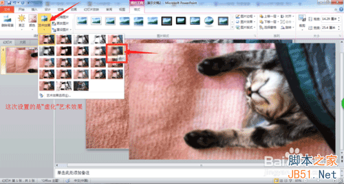 選中之前粘貼的圖片,在藝術效果中為其添加為“虛化”效果。