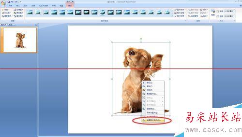 1、首先插入一張圖片,這個不多說了。方法有很多,直接拖動圖片到PPT相應位置,或者點擊插入→圖片。