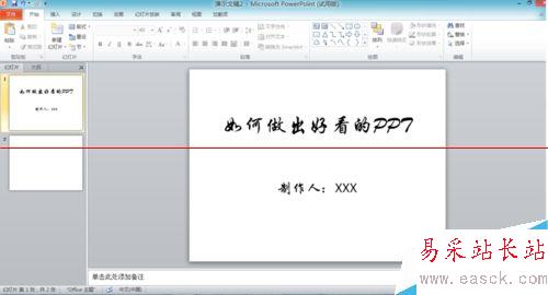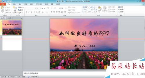 隨著信息技術的不斷發展,在數碼時代的今天,在我們工作和學習中,無論是課堂教學,學術論文報告,還是會議演講,產品發布,甚至是廣告等都需要做成演示文稿向觀眾講解,而我們大都數都會選擇運用Microsoft Office PowerPoint(以下簡稱ppt)來向觀眾講解,然而,一個好的會PPT成功吸引觀眾的眼球,有利于別人對自己觀點的理解和贊同。那么問題來了,如何才能做出好看的PPT呢,下面我就以Microsoft Office PowerPoint2010為大家講解。