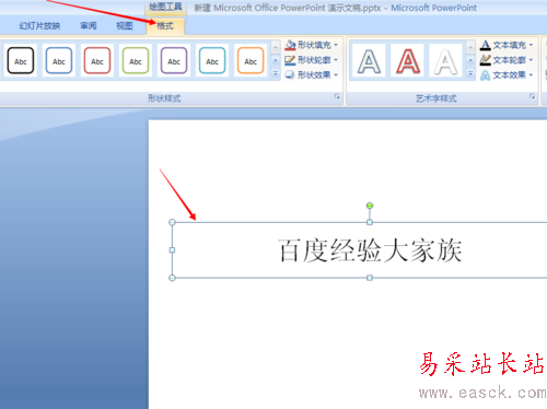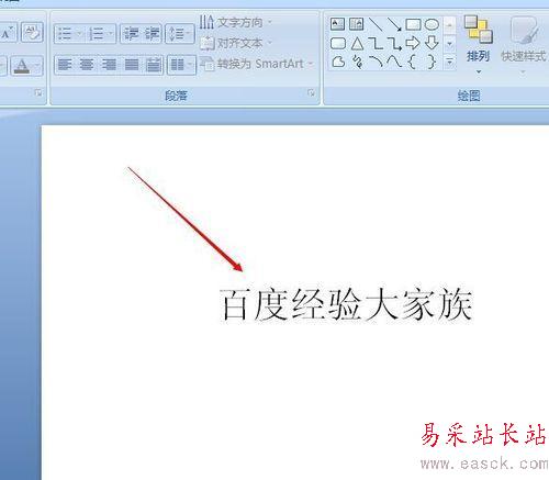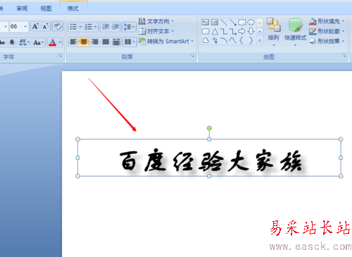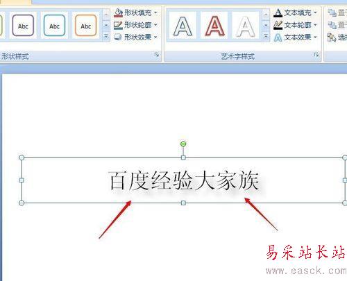 3、如圖我就以“百度經驗大家族”這幾個字為例子,來演示文字格式的效果;