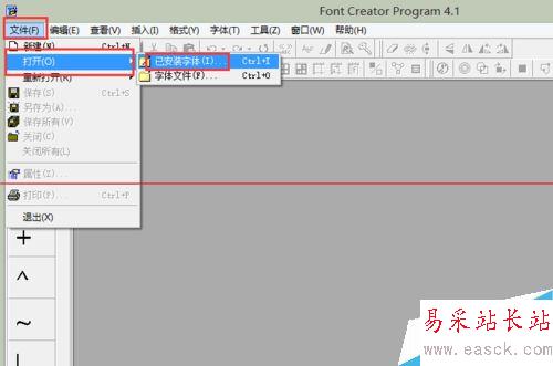 2、打開安裝好的軟件,在窗口菜單欄中點擊“文件”—打開—已安裝字體,選擇PPT中不能內(nèi)嵌的字體,單擊“確定”