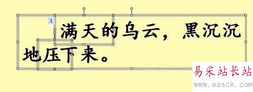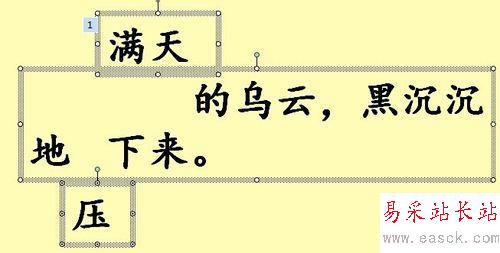 首先將我們要變色的字用單獨的文本框?qū)懗鰜?,原來占字符的位置用空格代替,在把文本框放在對?yīng)的位置