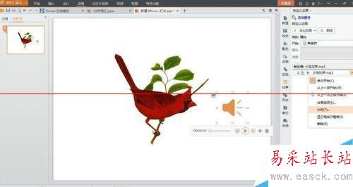 5、這就完成了,在播放幻燈片時單擊小鳥圖片就能發出小鳥叫聲啦!這樣的技巧一定讓你的PPT更加生動。
