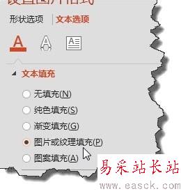 8、再選擇文本框,在”設(shè)置形狀格式"窗格中選擇“圖片或紋理填充”選擇下方的剪貼板。