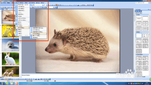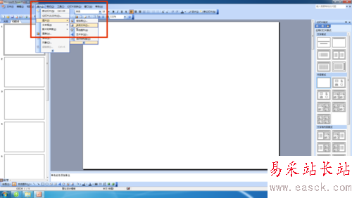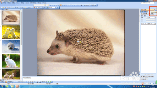 在右上角處點擊其他任務窗格的倒三角圖標。選擇”幻燈片切換“。