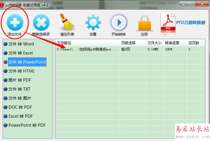 第三步,點擊“添加文件”,將準(zhǔn)備好的PDF文檔上傳到面板,目前PDF轉(zhuǎn)PPT轉(zhuǎn)換器可支持多個PDF文件轉(zhuǎn)換;