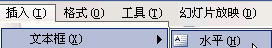 1)點(diǎn)菜單“插入- 文本框-水平”命令,鼠標(biāo)的指針變成一個豎線|;