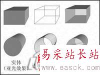 單擊〔設置/取消三維效果〕按鈕,可以實現平面圖形和立體圖形之間的快速切換。單擊〔深度〕按鈕,可以選擇不同的深度值,從而快速改變三維深度(如果您選擇了“無窮”,還可以制作出錐體效果)。單擊〔方向〕按鈕,可以快速改變三維方向,還可以在透視效果和平行效果之間快速切換。單擊〔照明角度〕按鈕,可以快速改變三維圖形各表面的光照強度,以突出圖形的不同側面。此外,您還可以選擇照明的亮度是“明亮”、“普通”還是“陰暗”。單擊〔表面效果〕按鈕,可以為三維圖形表面選擇不同的效果。特別值得一提的是,如果您選擇了“透明框架”效果,圖形將失去填充色,由實體快速轉換為透明框架,這在幾何教學中是非常實用的。
