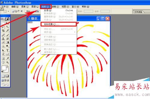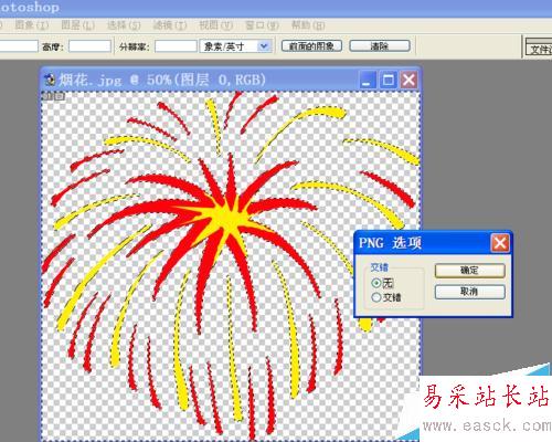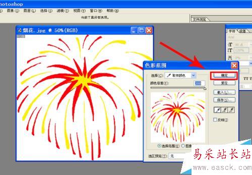 2、點擊菜單“選擇”——“色彩范圍”,在“色彩范圍”的對話框中選擇“取樣顏色”,顏色容差200,然后點擊選擇圖片的白色部分,點擊確定。再按鍵盤上的“Delete”刪除鍵,去除白色背景,再點擊菜單“文件”——“保存為”png格式,選擇“png選項”交錯“無”點擊確定。我們的煙花素材就制作完成了。
