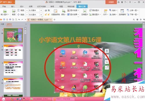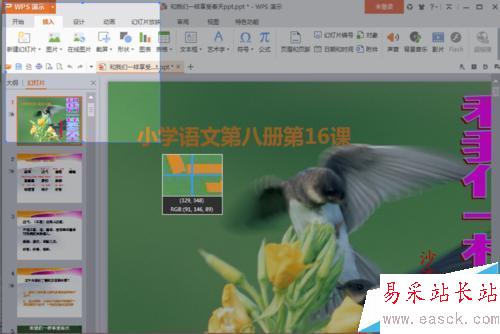 7、點擊之后就會隱藏當前ppt的窗口,然后拉動鼠標完成截圖,點擊下面的小對勾即可完成截圖