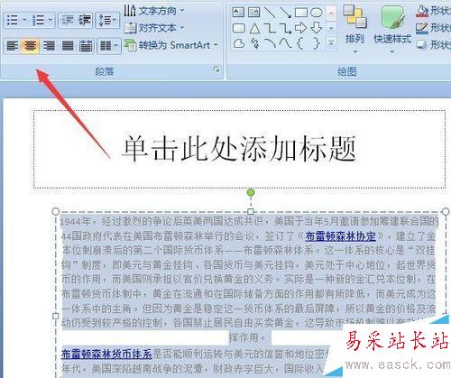 6、同時選中文字后,點擊工具欄上的段落界面中的菜單,設置文字的格式,居中還是居左,居右