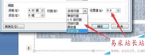 4、可以在間距那一欄中,行距那個選項,選擇單倍行距,多倍行距,固定值等等,然后在設置值那一欄,輸入相應的數值進行設置