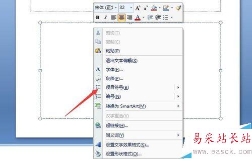 2、點擊一個文本框內(nèi)容,點擊鼠標(biāo)右鍵,在菜單內(nèi)容界面中,找到項目符號這一欄