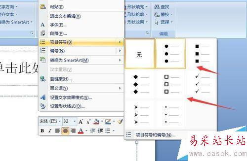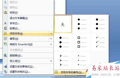 3、在項目符號這欄,我們能夠看到常用的項目符號選項,供我們選擇