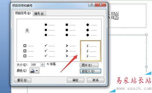 7、我們就能在項目符號的界面中,看到相應(yīng)的項目符號,是根據(jù)我們之前選擇的符號來設(shè)置的