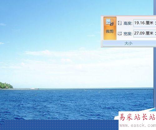 2、圖片工具——格式——裁剪,將水面以上剪去。