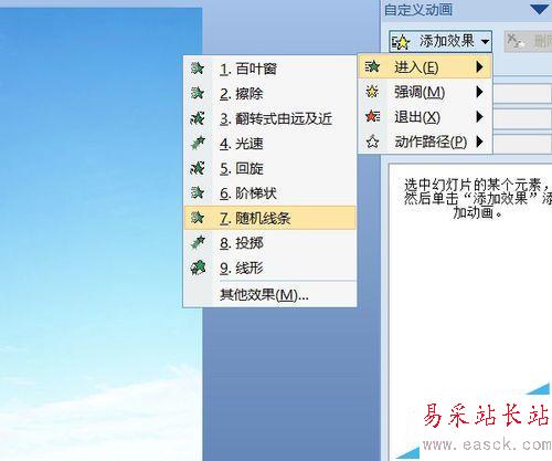 3、自定義動(dòng)畫——添加效果——進(jìn)入——隨機(jī)線條。