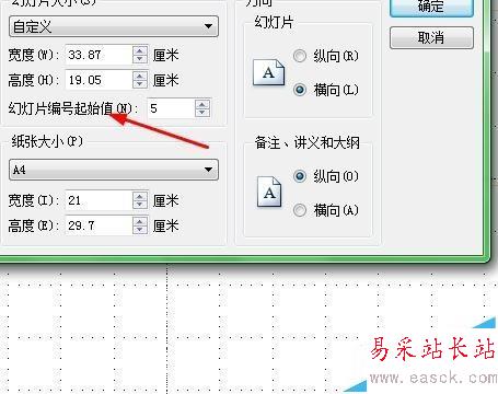 3、我們看到里面的幻燈片的編號起始值,我們可以隨意的輸入數(shù)值。