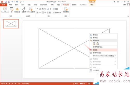 3、在幻燈片中拖動鼠標插入控件,右擊選擇“屬性表”;