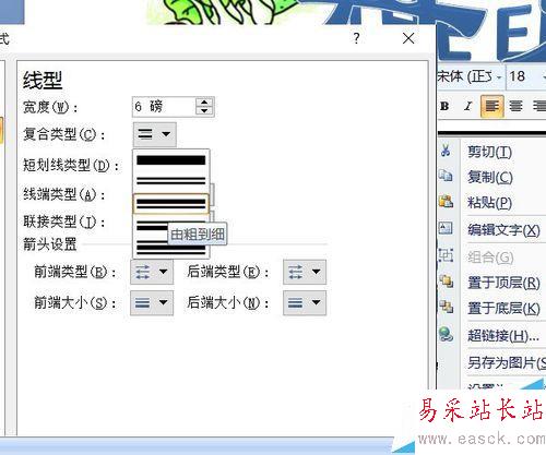 9、右鍵——設置形狀格式——線型——復合類型——由粗到細,寬度6磅。
