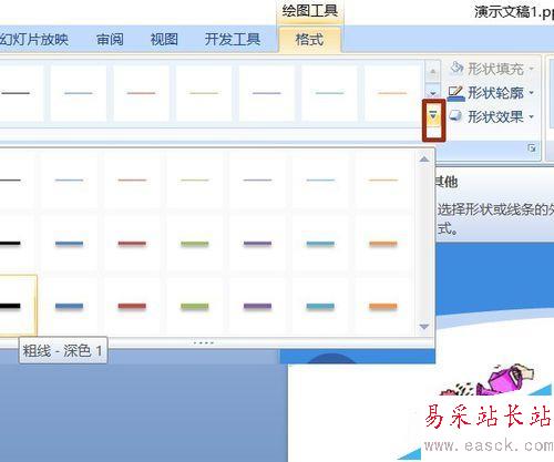 8、插入——形狀——直線,繪制一條分隔線。格式欄里選粗線。