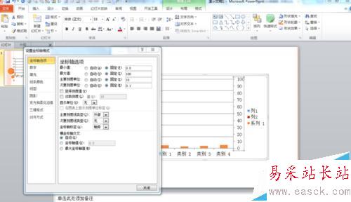 5、分別右鍵單擊主坐標(biāo)系、次坐標(biāo)系——設(shè)置坐標(biāo)軸格式——坐標(biāo)軸選項(xiàng)——選擇固定——設(shè)置坐標(biāo)——關(guān)閉