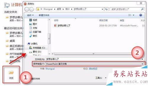 2、選擇“另存為”—>“計(jì)算機(jī)”,點(diǎn)擊“瀏覽”圖標(biāo),彈出另存為對(duì)話框,如下圖: