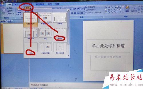 在“開始”菜單里,打開“版式”欄,把幻燈片版式調(diào)成“僅標(biāo)題”或者“空白”都行,因?yàn)樾麄黜?yè)肯定是要輸入內(nèi)容的,“僅標(biāo)題”的版式,可以通過(guò)不斷復(fù)制標(biāo)題欄來(lái)輸入內(nèi)容;空白的話,就需要通過(guò)插入“文本框”來(lái)輸入內(nèi)容。