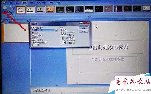 打開一個(gè)ppt演示文稿,在最上面”設(shè)計(jì)“菜單里,打開”頁(yè)面設(shè)置“—“幻燈片大小”,選擇打算做宣傳頁(yè)的紙張大小,一般宣傳頁(yè)的話,就“A4紙張”,把幻燈片調(diào)成如word紙張大小的,以便打印。
