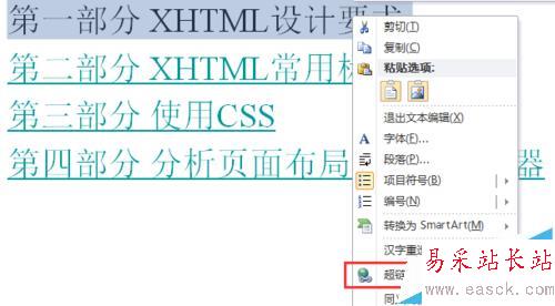2、具體做法是選中要設(shè)置為鏈接的文字后右擊鼠標(biāo),選擇“超鏈接”選項(xiàng)。