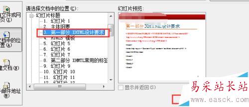 5、我們的目錄中第一個就是對應(yīng)第一個標(biāo)題的,所以我們選擇對應(yīng)標(biāo)題的幻燈片,可以看到幻燈片的縮略圖,然后點(diǎn)擊“確定”