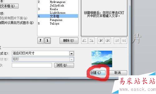 8、設置完成之后點擊“創建”按鈕,批量的圖片就會以幻燈片相冊的形式展示出來,并自動在第一頁添加一個標題頁,如果不需要這個標題頁,直接刪除幻燈片就可以了。