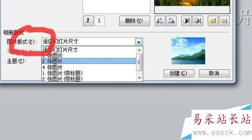 3、修改插入圖片的版式:有“使用幻燈片尺寸”“1張圖片”“2張圖片”等選項,可以即時預覽插入圖片的版式,選擇自己需要的版式