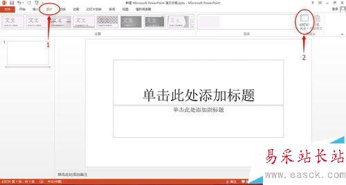 1、首先使用2013版ppt新建一個pptx文檔,先點擊設計按鈕