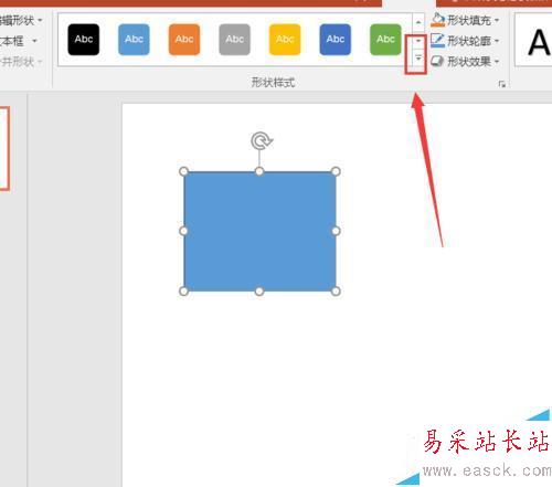 2、然后我們點擊這個圖形,這樣我們就會直接進入格式的界面去,這里我們可以看到格式下面就有可以選擇的圖形效果的選擇,這里如果我們沒有特別的要求就可以點擊下圖標記的地方。