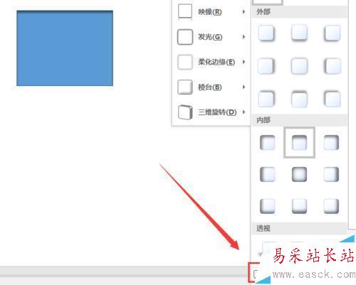 7、接下來,我們說一下映像效果的設置,進入方式和上面的陰影是一樣的,不過我們選擇的就是映像,其實我們所說的映像效果也就是倒影的效果,這里我們也是有很多默認的效果,也是又需要的就可以之間在這里選擇。