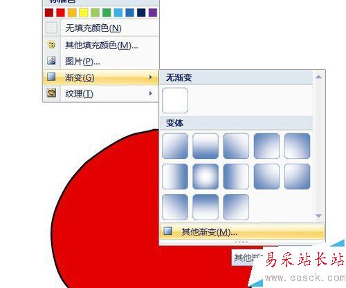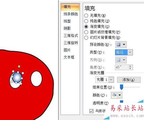 7、再次使用橢圓形狀,畫出兩個較小的橢圓,填充色選漸變,在其他漸變里類型選為路徑。