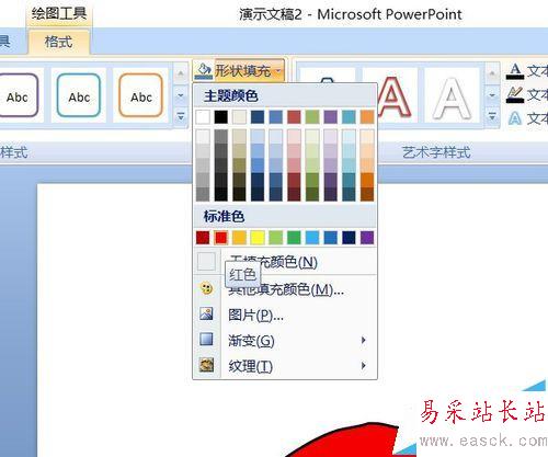 5、繪圖工具——形狀填充——紅色,將面部填充上紅色。